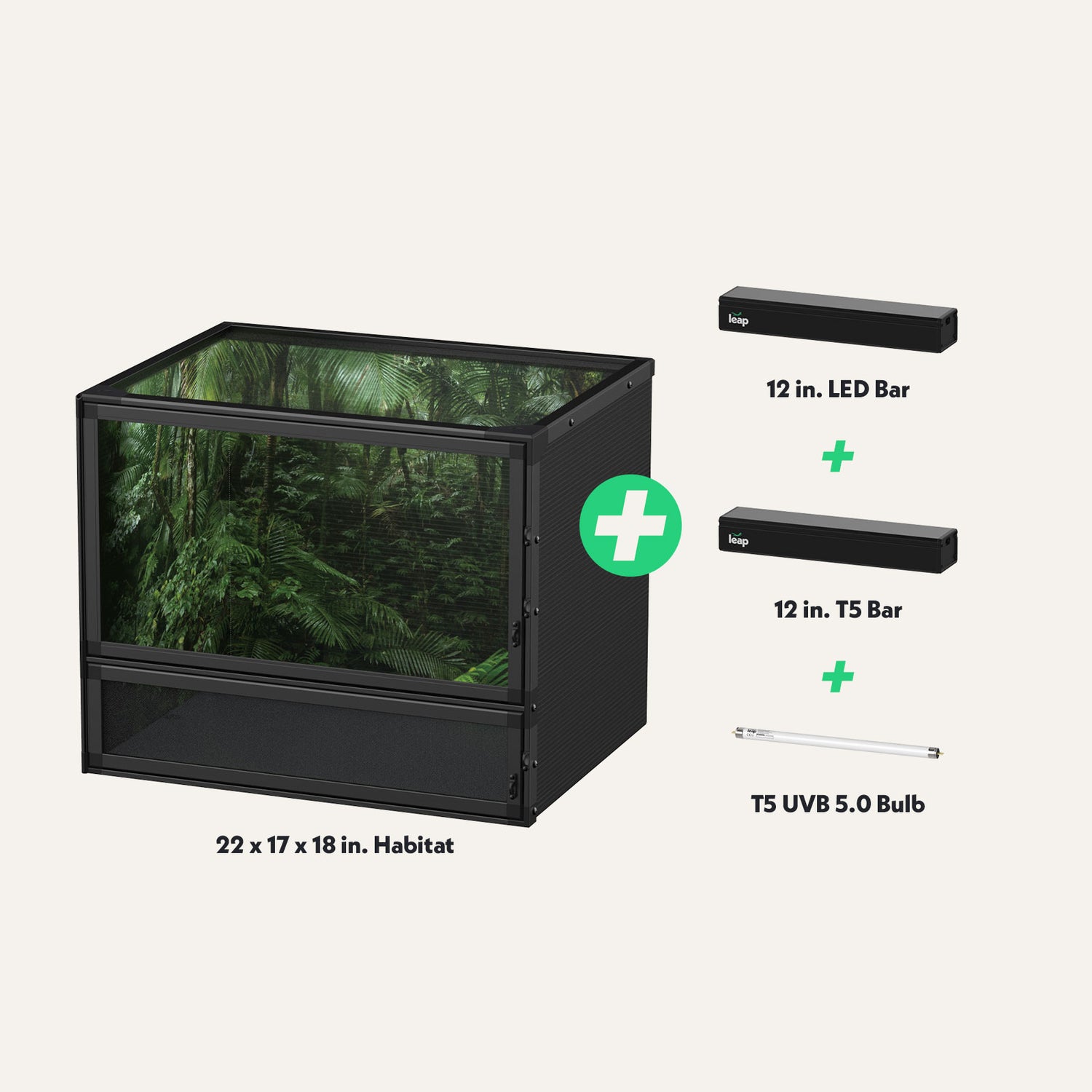 Included Leap Liner holds sufficient substrate and withholds water allowing for construction of bioactive habitats.