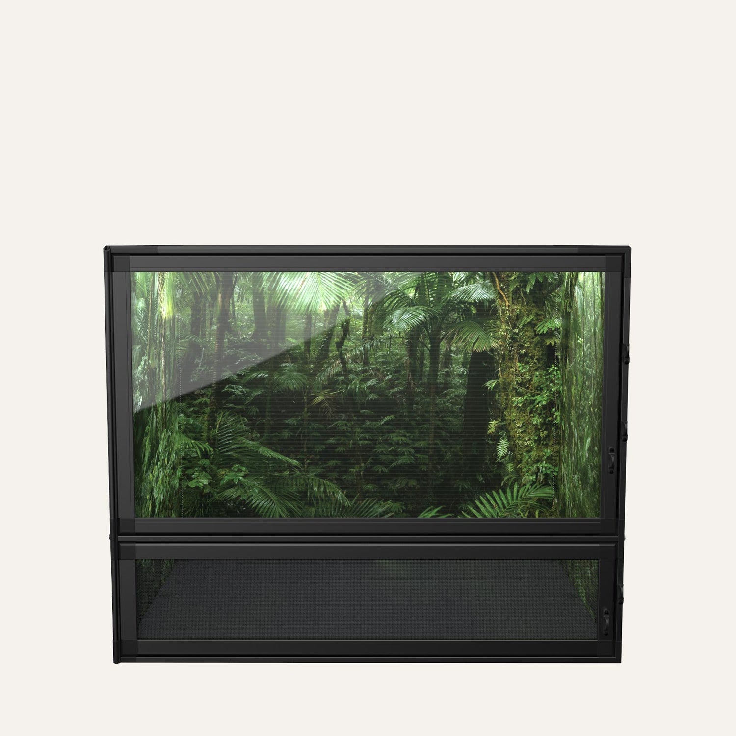 Pre-printed rainforest background specially designed to blend in and take your eye away from the background and back to the contents of the habitat itself.